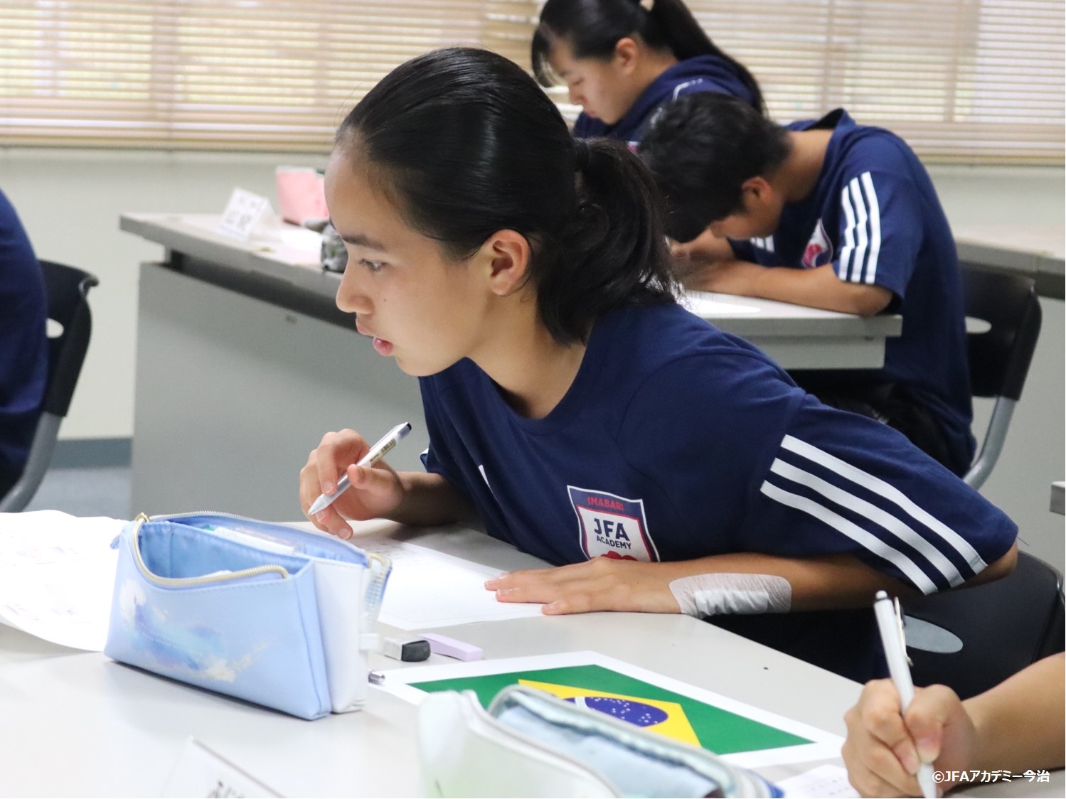 私は1学期を振り返っていろいろなことにチャレンジできました。4月に、JFAアカデミー今治に入寮し、もう1学期が終わりました。とても忙しいことや大変なことがありました。でも楽しかったことがとても多かったです。いい思い出がたくさんできました。1番印象的なのはトレーニングです。最初は11期生の中でも自分の思うようにできなかったし、上級生の中でやるとボールにすら触れないくらいでしたが、今ではボールを触れるくらいにまでなりました。自分なりには成長したかなと思います。ミスをして、チームに迷惑をかけることはたくさんあるけれど、これからもっと努力して少しずつ減らしていけたらいいなと思います。2学期も、仲良く協力して楽しい日々を過ごしたいです。そして日々のトレーニングに全力で取り組み、もっと成長できるようにしたいです。