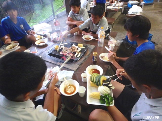 2日目の夜は、アカデミー福島と熊本宇城の合同でバーベキューを行いました。食事をしながらお互いに自己紹介をしたり、進路の話をしたり、サッカーについての話もでき、楽しい時間を過ごすことができました。今回の遠征で学んだことを、いつでもどんな時でも発揮できるようにこれからも努力していきます。