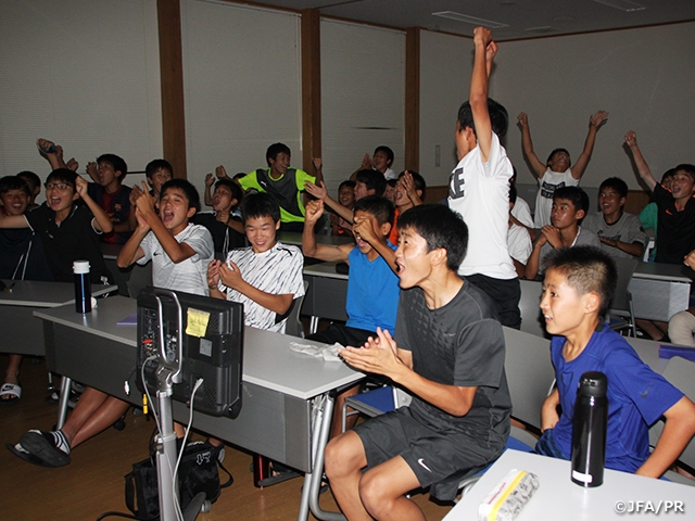 JFAアカデミー熊本宇城 ワールドカップ日本代表戦をTV観戦し、プレースピードや球際の強さを学ぶ