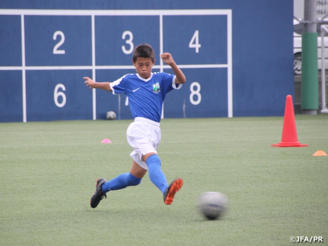 オンザピッチでは動きながらコントロールすること、パススピードを速くすることを意識してこの4ヶ月間取り組みました。ボールを蹴りやすい所に動きながらコントロールすること、無駄なタッチを減らすことが僕の課題です。オフザピッチでは、時間が決まった中で仲間と協力する大切さを学びました。また、「誰かがやってくれるだろう」という小さなことでも、率先して行動することが大事だと分かりました。夏休みは所属チームでの活動になります。自分の課題を意識してトレーニングし、オンザピッチでもオフザピッチでもしっかりできる選手を目指します。