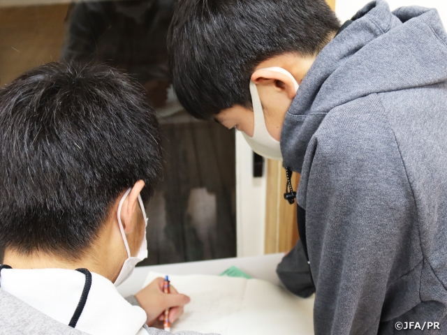 アカデミーの最高学年でもあり受験生でもある10期生は、1月から入学試験が始まっています。彼らは、中学2年生の終わり(2020年1月)から本格的な進路選択の活動を継続して行なってきました。まずは希望する高校の偏差値や学校の特色、またサッカー面の特徴や環境などを調べました。そして、自分の意見を保護者や所属チームに伝え、それを受けて保護者からのコメントをもらい、保護者の意見や思いを知ること、所属チームや中学校との報告、連絡、相談などのやり取りをすることなど、アカデミー生本人と保護者、所属チーム、中学校、アカデミーが協力し、進路先を決める活動を行なってきました。