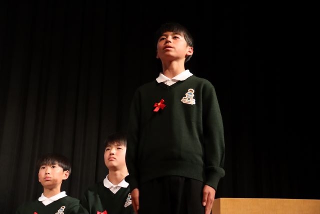 河田信之スクールマスターからは「友人と協力し勉学や運動に励み、感謝の気持ちを忘れず、自分の行動に責任と誇りをもち信頼される人間になってください」とエールが送られました。