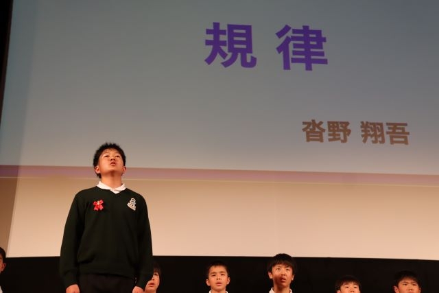 僕は、プロサッカー選手になる夢を叶えるためにアカデミーに入りました。これから三年間アカデミーの一員として仲間と共に助け合い、時にはライバルとして競い合い闘っていくことになります。意識を高く持ち、自分の意思で行動、発言ができる人間になりたいです。そして夢に近づくことができるよう仲間と努力したいと思います。