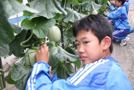ハウスの中から自分が気に入ったメロンを探しだし。