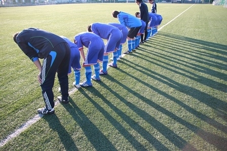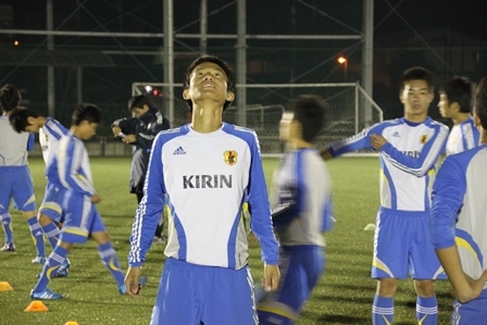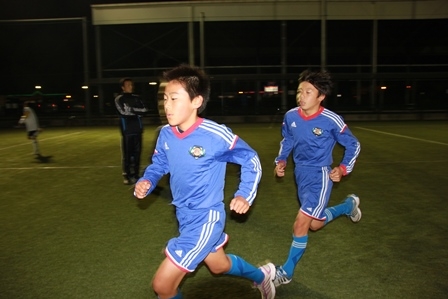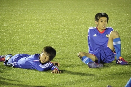 シャトルランの前に心を鎮めて準備をする一怜哉(右:UKI-C.FC)