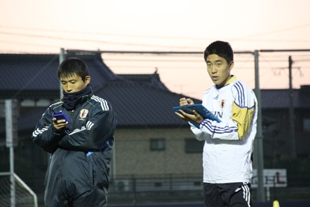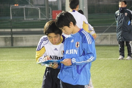 記録する方も高い集中力が必要になります。宮川コーチと村上広樹(筑後FC)