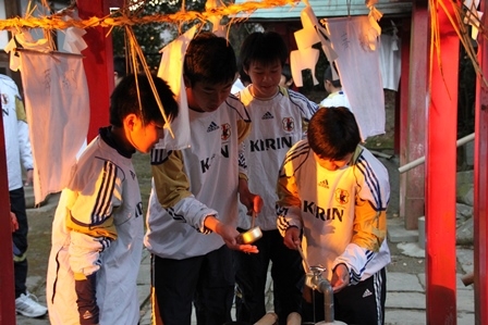 冬休み中の出来事を語らいつつ、小川阿蘇神社に向かいました。