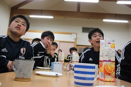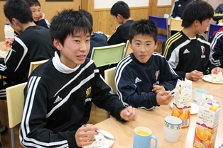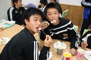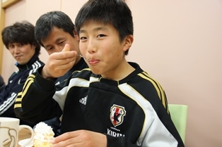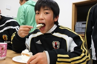 主役の選手たちが新たな一年の決意表明をした後は、ケーキを食べながらしばし歓談。