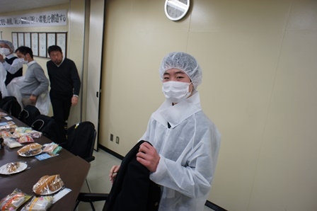 工場見学の前には髪の毛や外からのほこりを持ち込まないように着替えをしました。