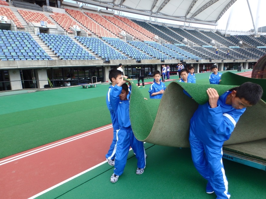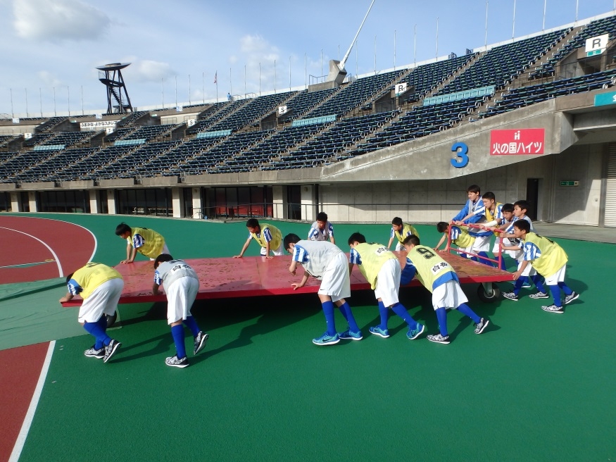 試合が終わり、ホッとする間もなく、今度は後片付けです。