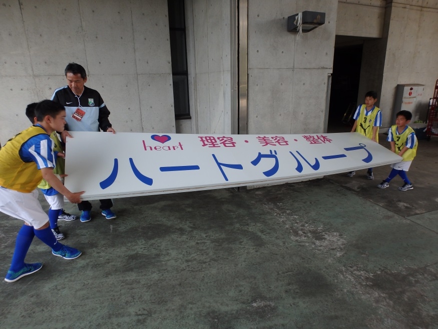 全員で協力し、大きな看板も運びました。