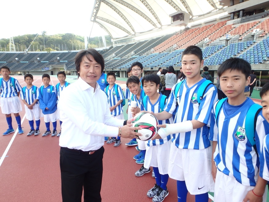 そんなアカデミー生の頑張りを称え、ロアッソ熊本の池谷社長からは、なんと実際に試合で使用したボールを頂きました。