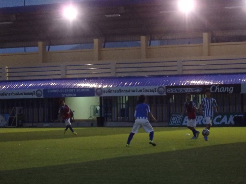 練習の会場はチョンブリにある体育施設の人工芝のグラウンドをお借りし、約90分移動で固まった身体をほぐしたり、また翌日の練習試合に備えて守備の練習をしました。
