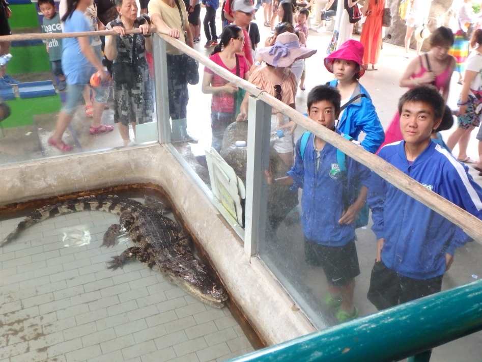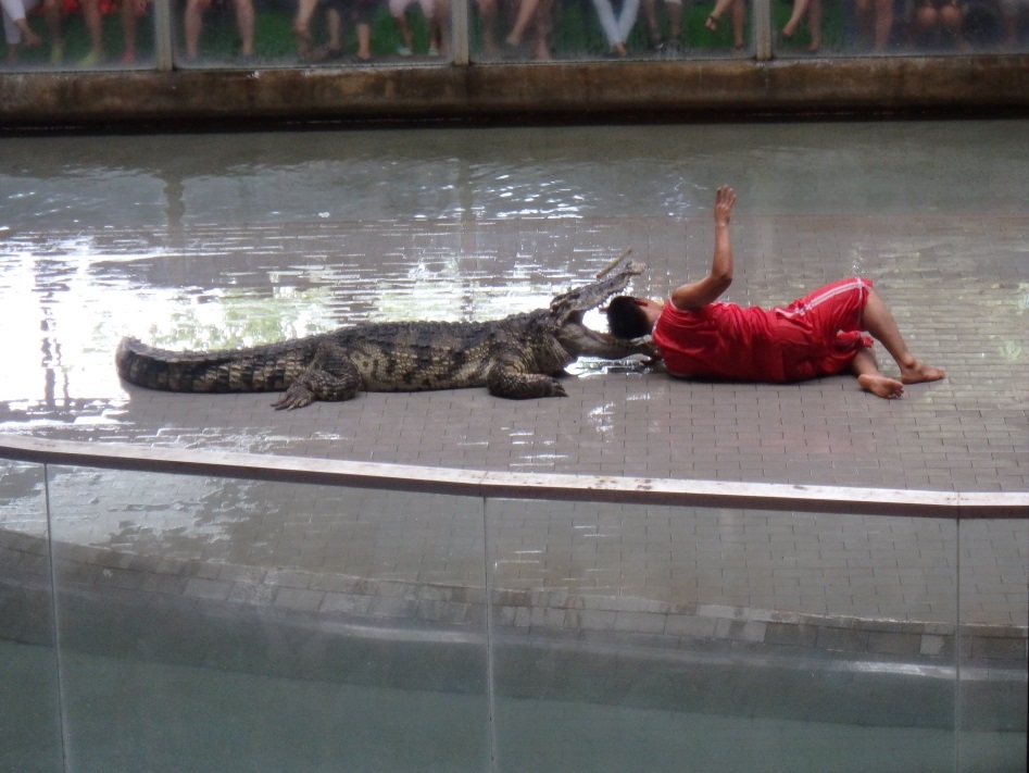 初めにワニのショーを見ました。ワニ使いがワニを操り、ワニにキスをしたり、