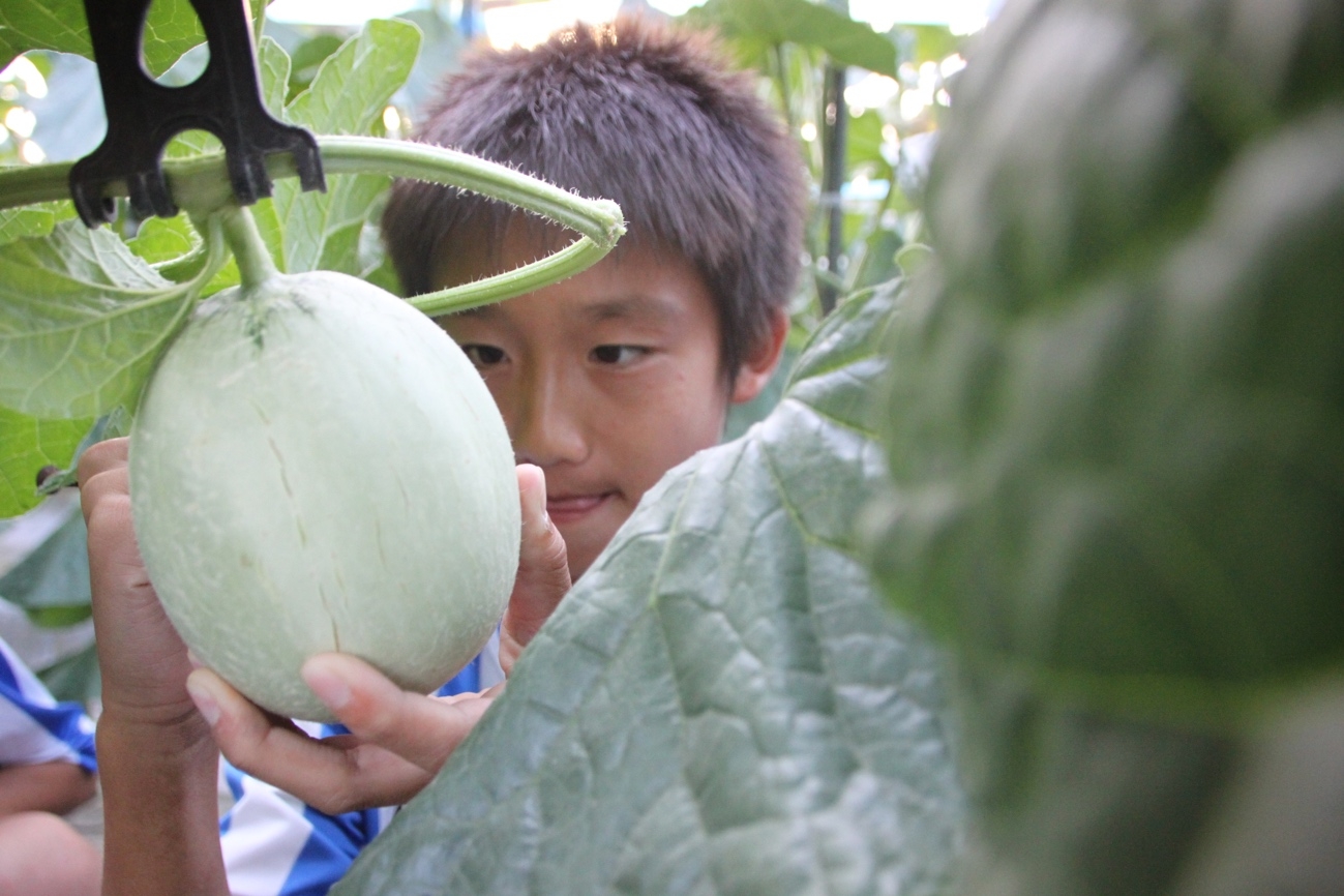 ハウスの中では、まず自分のお気に入りのメロンを探しました。