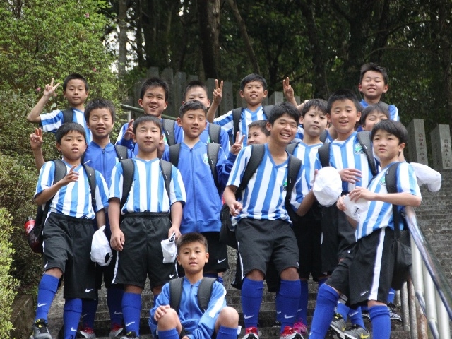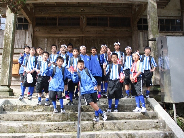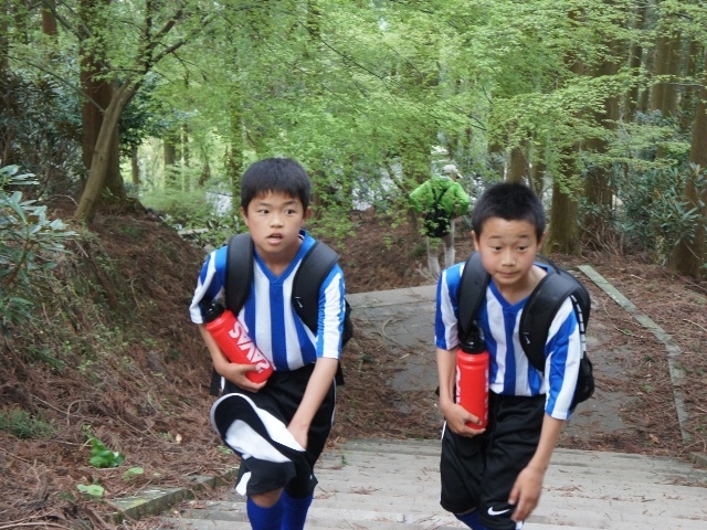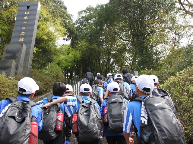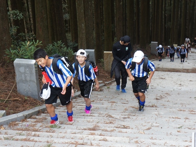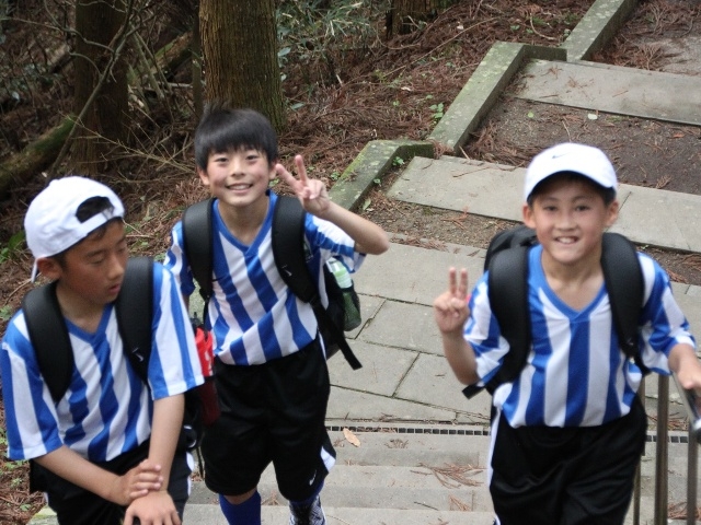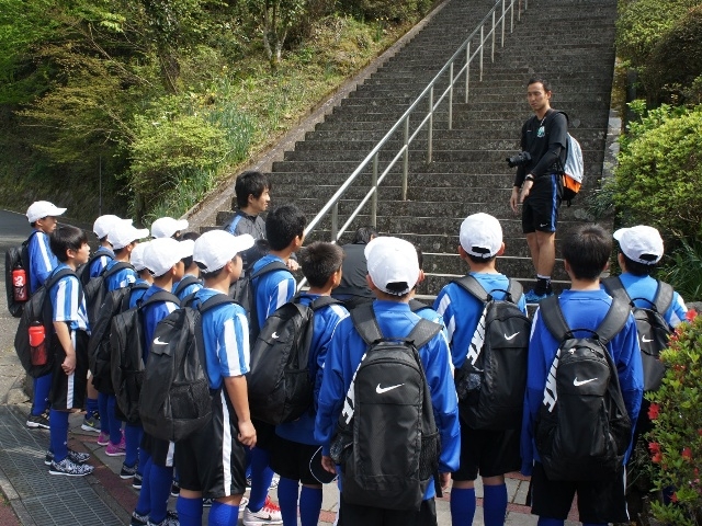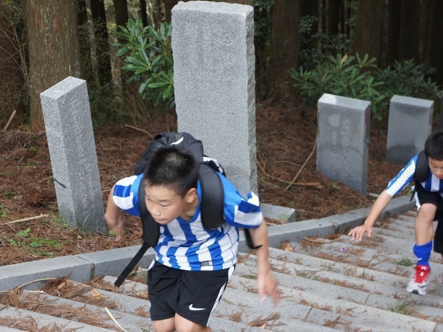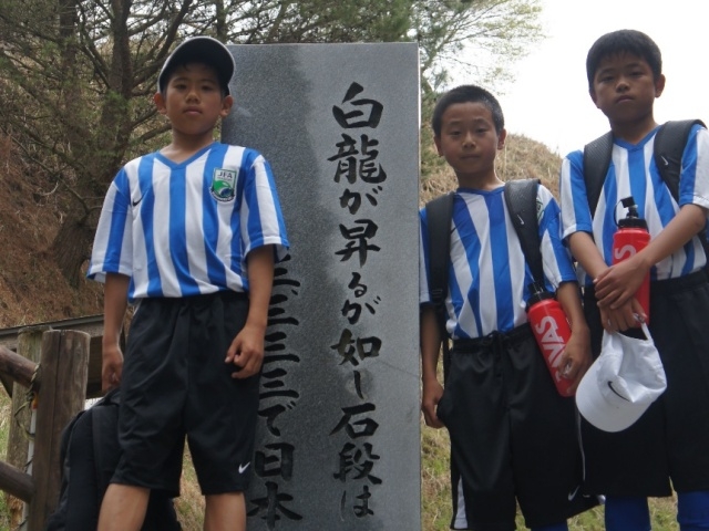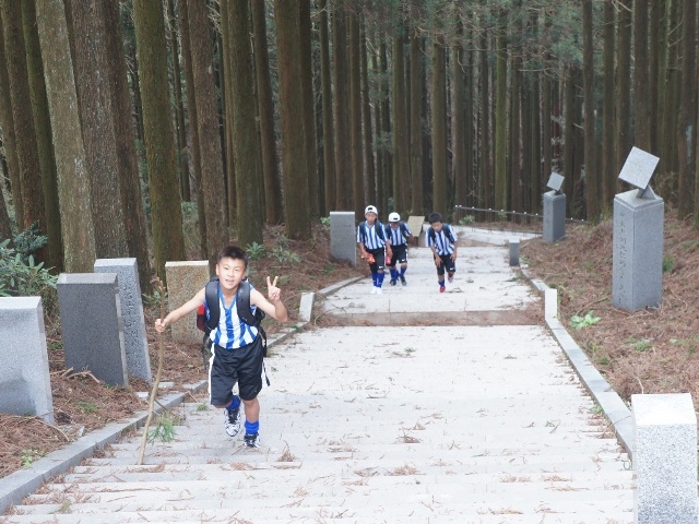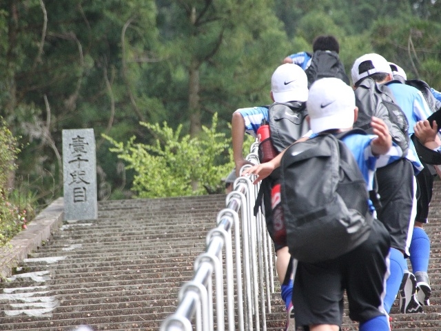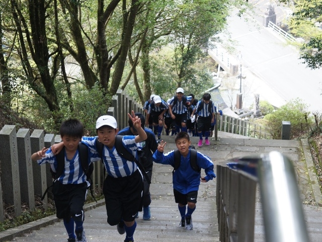 JFAアカデミー熊本宇城恒例、新入生みんなで日本一の石段への挑戦。