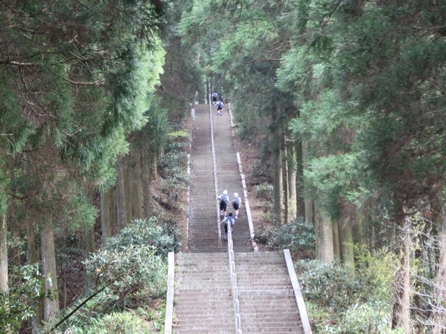 3人が先頭グループでした。急な勾配の石段をほぼノンストップで登り続けました。記録は34分。
