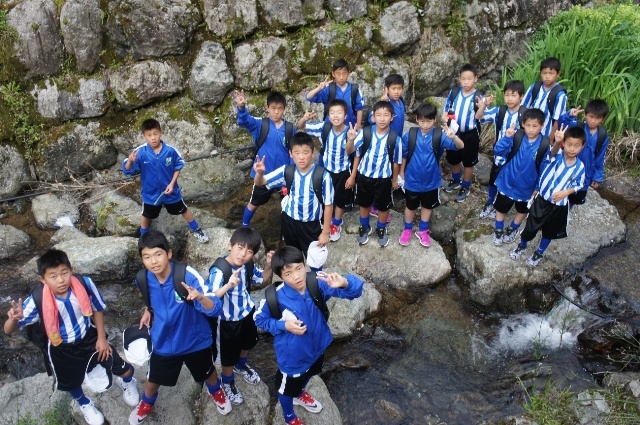 麓の川での一枚ですが、疲れ切った表情の8期生でした。