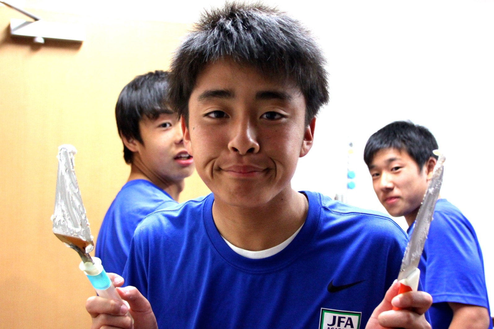 震災後、選手は一時的に自宅に帰省をしアカデミー活動は休止せざるをえない状況でした。