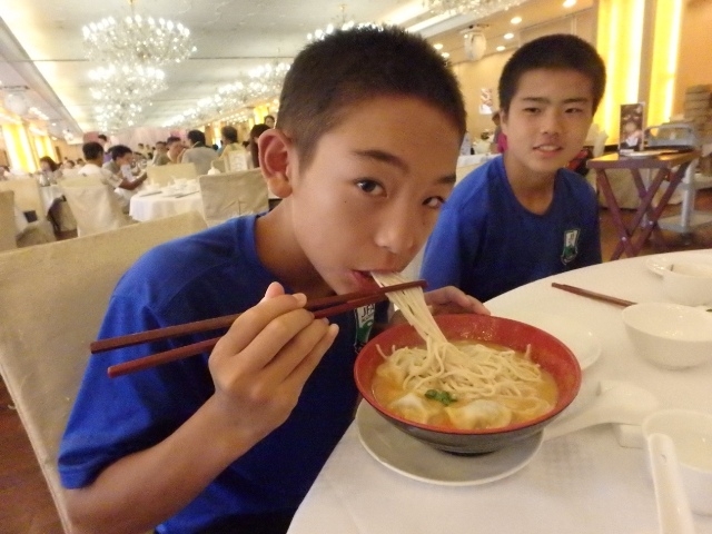 海辺にあるレストランでは、炒飯や焼きそば、小籠包などたくさんの種類の料理を注文し、みんなで分け合いながら食べました。