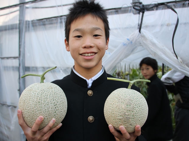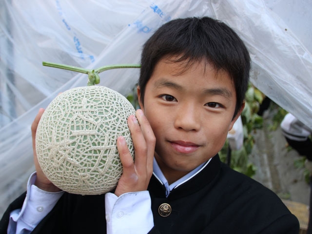 それぞれが世界にひとつだけのメロンを収穫しご満悦の様子です。
