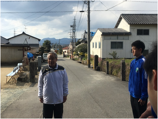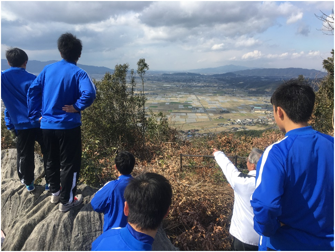 山頂では河田さんが小川町の歴史やそこから見える色々なものの説明をしてくださいました。普段何気なく見たり通り過ぎたりしているところに、色々な歴史があることを教えていただき、3年間過ごしてきた場所の新たな一面を知ることができました。