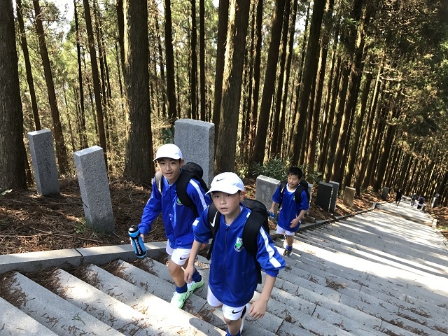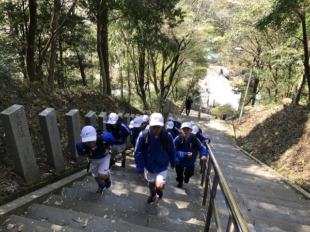 この日は午前中に地域のごみ拾い、アカデミー全学年合同ミニゲーム大会、午後は3,333段の石段登りといろいろな活動がありました。今回の石段登りの挑戦で、1人1人が大きな自信を手に入れたのではないでしょうか。今後困難なことが待ち構えていようと、自信をもって頑張ってほしいです。そして苦しい時にお互いに声を掛け合うことで、9期生の絆が更に深まったと思います。その絆を今後のアカデミーでの生活に活かすとともに、今回のように1段1段、夢への階段を登っていってほしいと願っています。