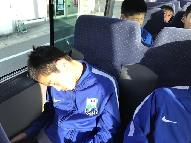 帰りのバスでの1枚。気持ちよく寝ている本山雅斗(UKI-C.FC)。