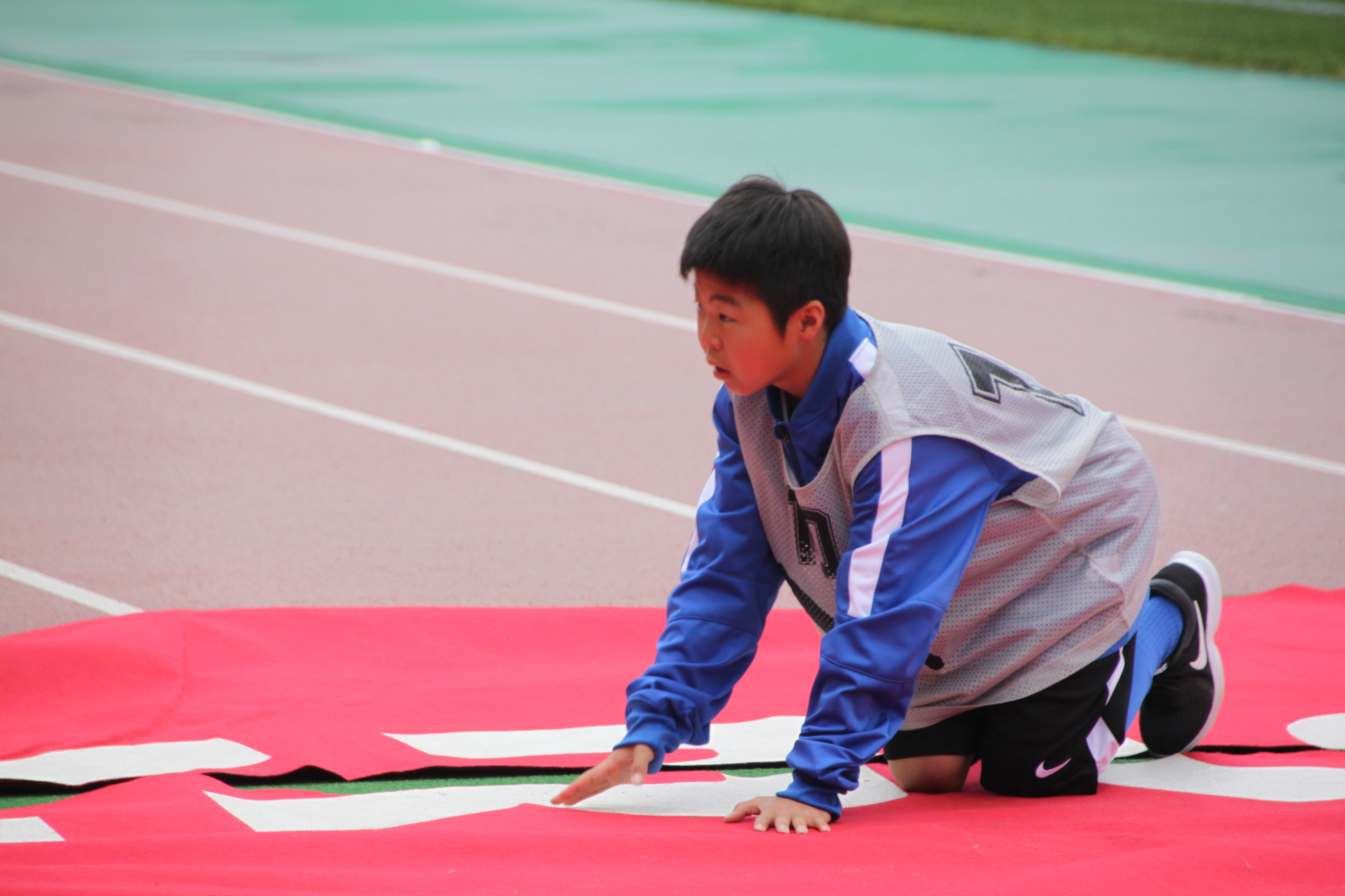 選手入場時に使用するマットを引きます。