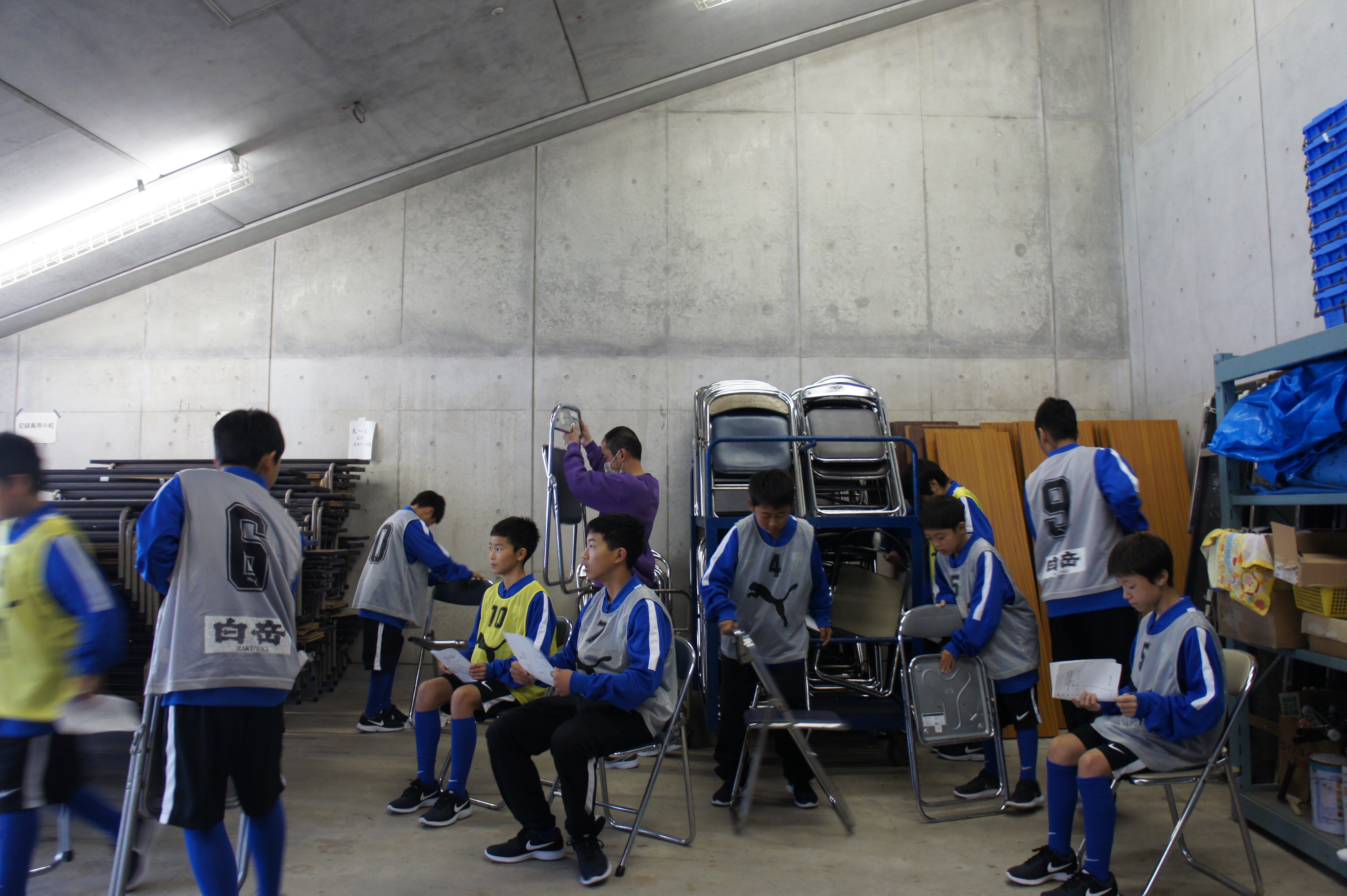 それから、ボールパーソンで使うパイプ椅子を準備しました。パイプ椅子が壊れていないか確認をしています。