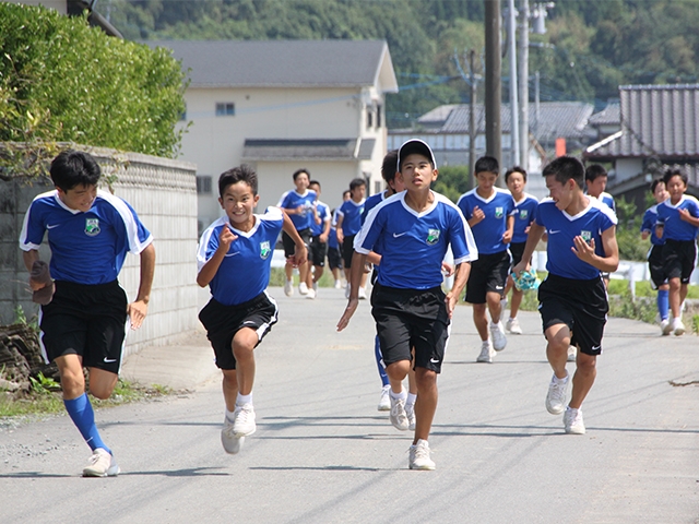 カメラに気付き、急に走り出した安達秀都(中央右:9期生:ソレッソ熊本)と、岩永創太(中央左:10期生:UKI-C.FC)