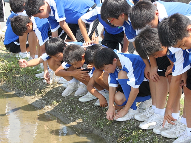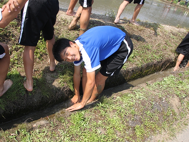 10期生(1年生)は田植えを初めて経験する選手が半数ほどいた為、田んぼに興味津々です。