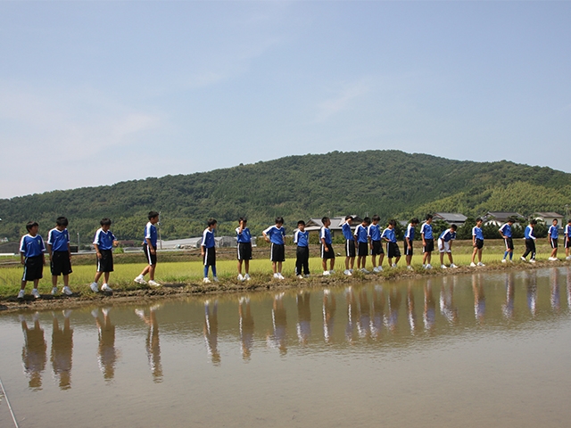 学校が終わると、選手たちは田んぼを目指して急いで移動を始めます。