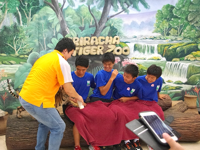 まずは虎との写真撮影を体験しました。虎を膝に乗せて写真を撮影するのですが、膝の上で虎が暴れないか不安でしたが、楽しく写真撮影をすることが出来ました。