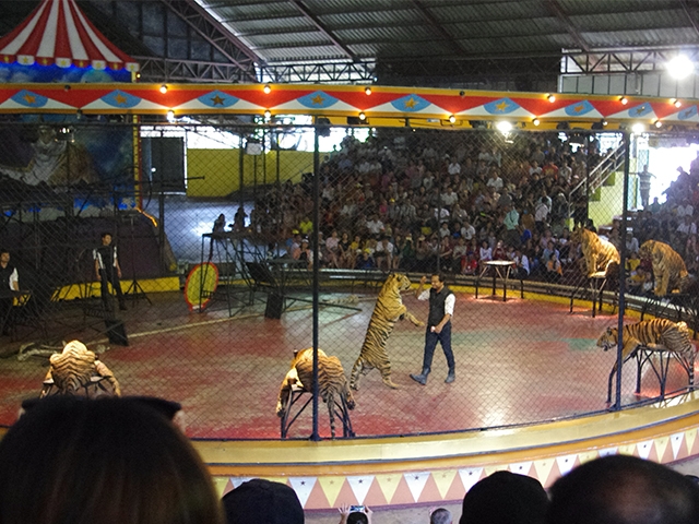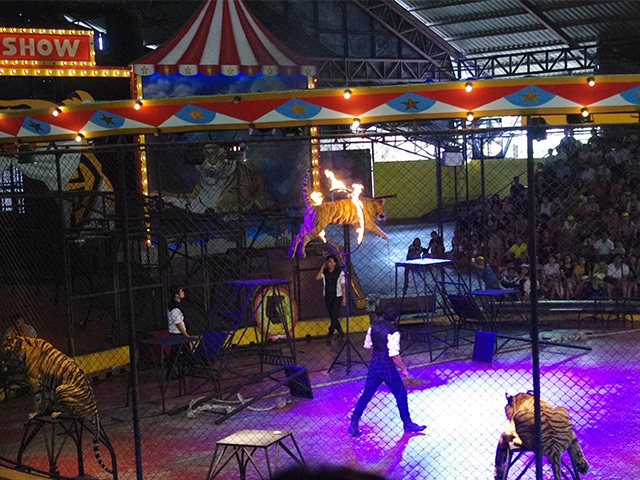 大きな体の虎が、2足歩行で立って歩いたり、火のリングを通り抜けたりしていたので、さらに大きく見えました。