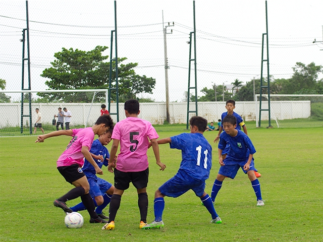 タイの選手は球際が激しく、体格に差がある相手からボールを奪えない場面がたくさんありました。しかし、ボールと相手選手の間に体をしっかり入れる事を意識したり、前線の味方が戻ってボール保持者を挟み込んで奪う連携した守備など、日を重ねるにつれてボールを奪える回数が増えました。