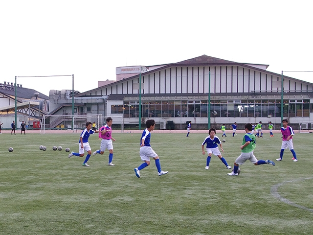 2日目の午前中には、JFAアカデミー福島の選手と混合で練習試合を行いました。