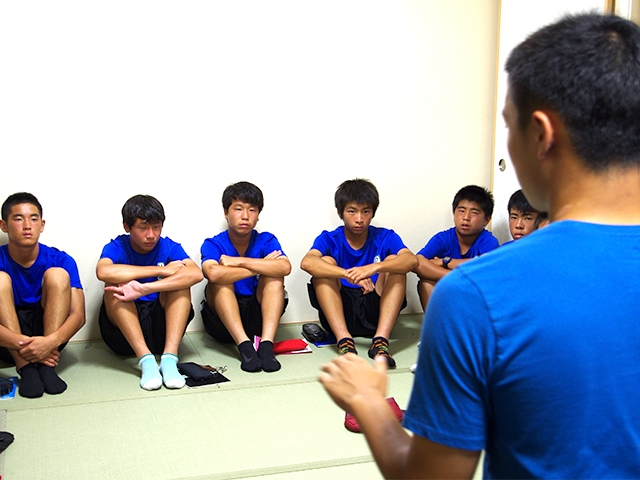 BBQを終えて宿舎に戻ってから、JFAアカデミー熊本宇城を卒校してJFAアカデミー福島に編入した川田啓介選手(JFAアカデミー熊本宇城7期生)が話をしてくれました。
