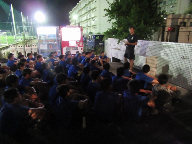 今回の避難訓練では就寝中を想定して行ったため、アカデミー施設内の電気は全て消して行いました。そのため避難訓練後の振り返りでは、選手たちの中から「部屋が真っ暗で自分のスリッパがどこにあるのか分からず戸惑った」ことや「懐中電灯の置き場所を全員が知っておくことが大切」といった意見が出ました。実際に訓練を行うことで改めて気づくこともあり、非常に意味のある避難訓練になったと思います。