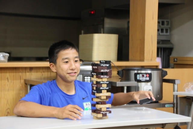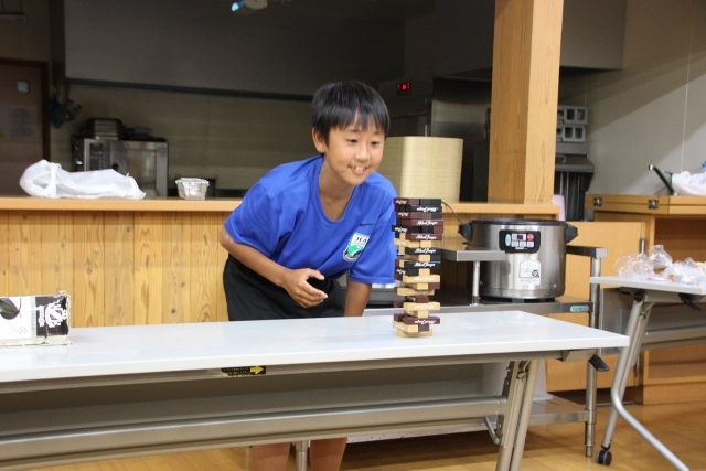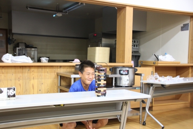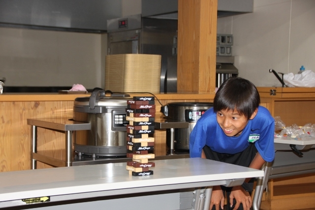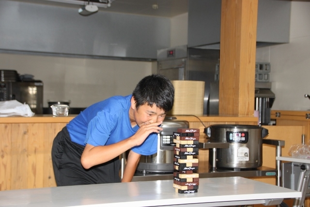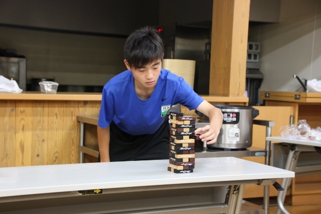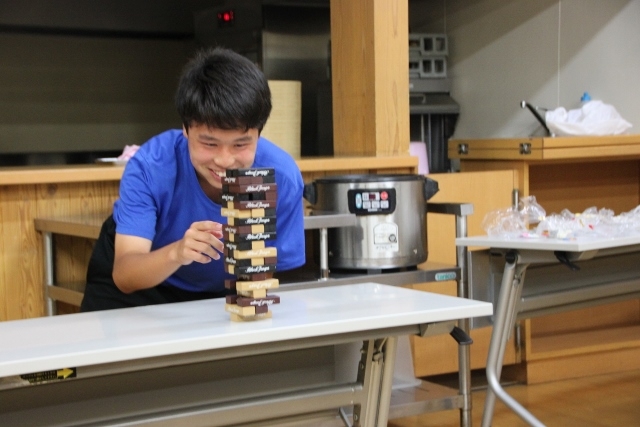 今回は誕生会の主役たちが順番にジェンガにトライしました。倒した人が一発芸をすることになりましたので、順番が回ってくるたびにかなり緊張していた主役たちと、それを見て盛り上がる他のアカデミー生たちの二つに分かれました。