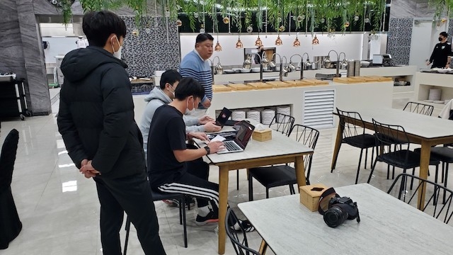 韓国のサポートスタッフ皆さんで協力していただき、無事に選手たち全員の手続きが完了。ありがとうございました!