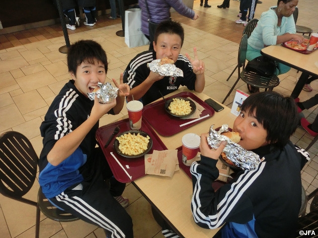 二つ目は、ご飯についてです。アメリカの料理は、お米はあまり出てこなくてパンがメインでした。ボリュームがたっぷりだったので体の大きさが違ったり、パワーがつくのだと思いました。また、そういうこともサッカーに関係するのだと感じました。