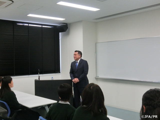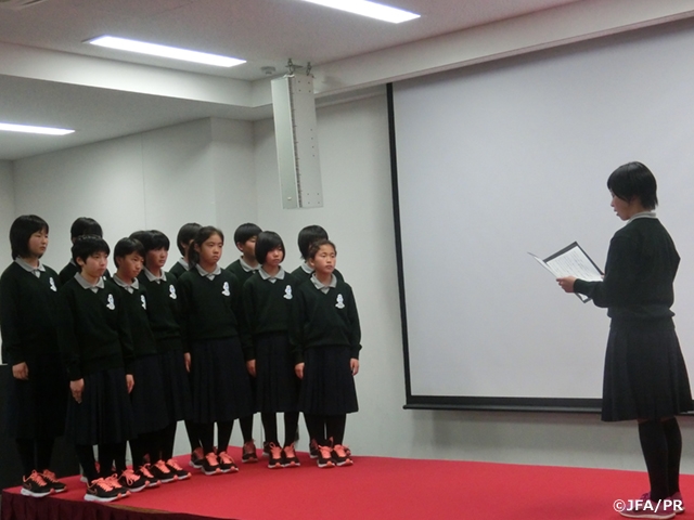 出席した田嶋幸三JFA会長よりアカデミー生へ向けて「なでしこらしい選手を目指してほしい」と激励の言葉が送られました。