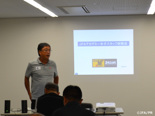 静岡県裾野市、大阪府堺市、愛媛県今治市と日頃3か所で活動している女子のアカデミーのスタッフが一堂に会して、ピッチの上での指導力の向上は元より、それぞれの活動の情報を共有することで、各アカデミーがその活動をさらに活性化させていくことを目的に実施しました。3つのアカデミーの活動形態や活動環境は異なりますが、その目的は「世界基準の選手・人間育成」であることに違いはありません。そのために、コーチだけでなく、アスレティックトレーナー、選手管理など全ての指導スタッフの資質の向上はとても重要だと考えます。今後も選手と共に指導者も成長し、JFAアカデミーの活動をより充実させていきたいと思います。
