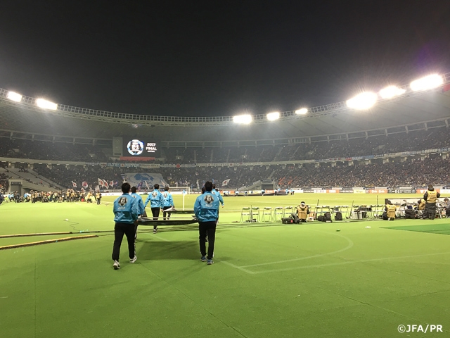 JFAアカデミー福島の選手が12月9日(土)と16日(土)の二日間、味の素スタジアムで行われたEAFF E-1サッカー選手権決勝大会にて、フラッグベアラーを担当しました。