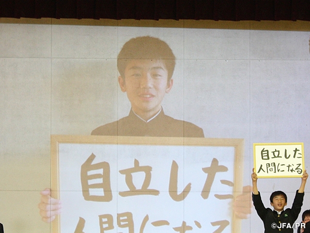 JFAアカデミー福島11期生 富士岡中学校立志式に出席