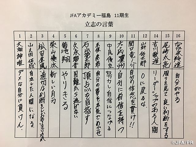 2月5日(月)に、JFAアカデミー福島の11期生(中2)は、通学している御殿場市立富士岡中学校での立志式に出席しました。