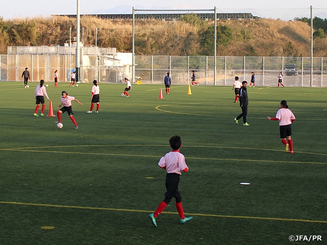 今週はFC今治U-14男子と練習試合がありました。相手は一つ下の年代の選手でしたが、男子でよく考えてプレーをしているのでとても手強い相手です。私たちは先月行われた「J-GREEN堺フェスティバル」が終わってから少し気が緩んでいたことがありましたが、「堺フェスティバルが終わったけれど、ここからが本当の始まり」とコーチに言われ、あらためて強い気持ちで臨めました。試合は前半、私たちが押し込む場面が多くありましたが1点が遠かったです。一方、相手はそんな私たちのミスを見逃さずカウンターで攻撃してきました。最後まで苦しい試合になりましたが、何としても勝つという思いを持ち、勝ち切ることが出来ました。もう少しでJFAアカデミー今治を卒校しますが残りのトレーニングを一生懸命頑張りたいと思います。