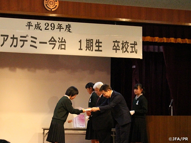 3月16日(金)、愛媛県今治市朝倉公民館にて、「JFAアカデミー今治 平成29年度1期生卒校式」を行いました。