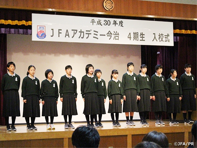 4月9日(月)、JFAアカデミー今治4期生の入校式を今治市朝倉公民館にて行いました。四国各県のサッカー協会、今治市サッカー協会、いつもサポートしていただいている企業の方々や保護者、チーム関係者等約100名が見守るなか、4期生12名が入校式に臨みました。